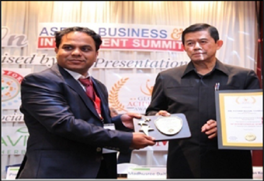 Dr. Sandip Tambare President of Yash Medical Foundation Awarded by International Star of Asia Award in Bangkok (Thailand ) in the 10th international summit in presence of Mr. Khun korn , Dabbaransi former Deputy prime Minister organized by Indian Achievers forum